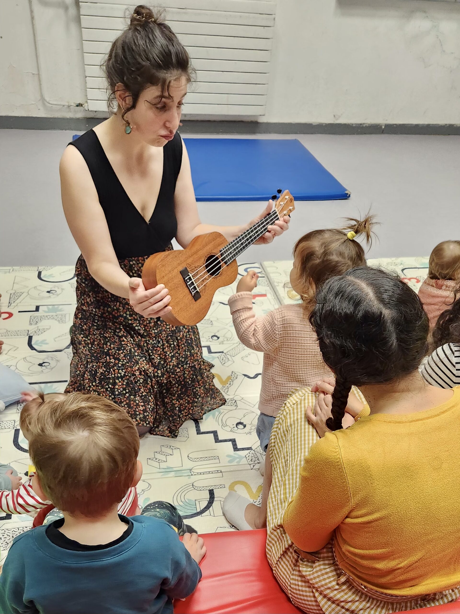 Sarah Gross est chanteuse de formation lyrique et musicienne multi-instrumentiste. Elle intervient auprès des tout-petits que ce soit en atelier parent-enfant, en crèche ou en école maternelle.