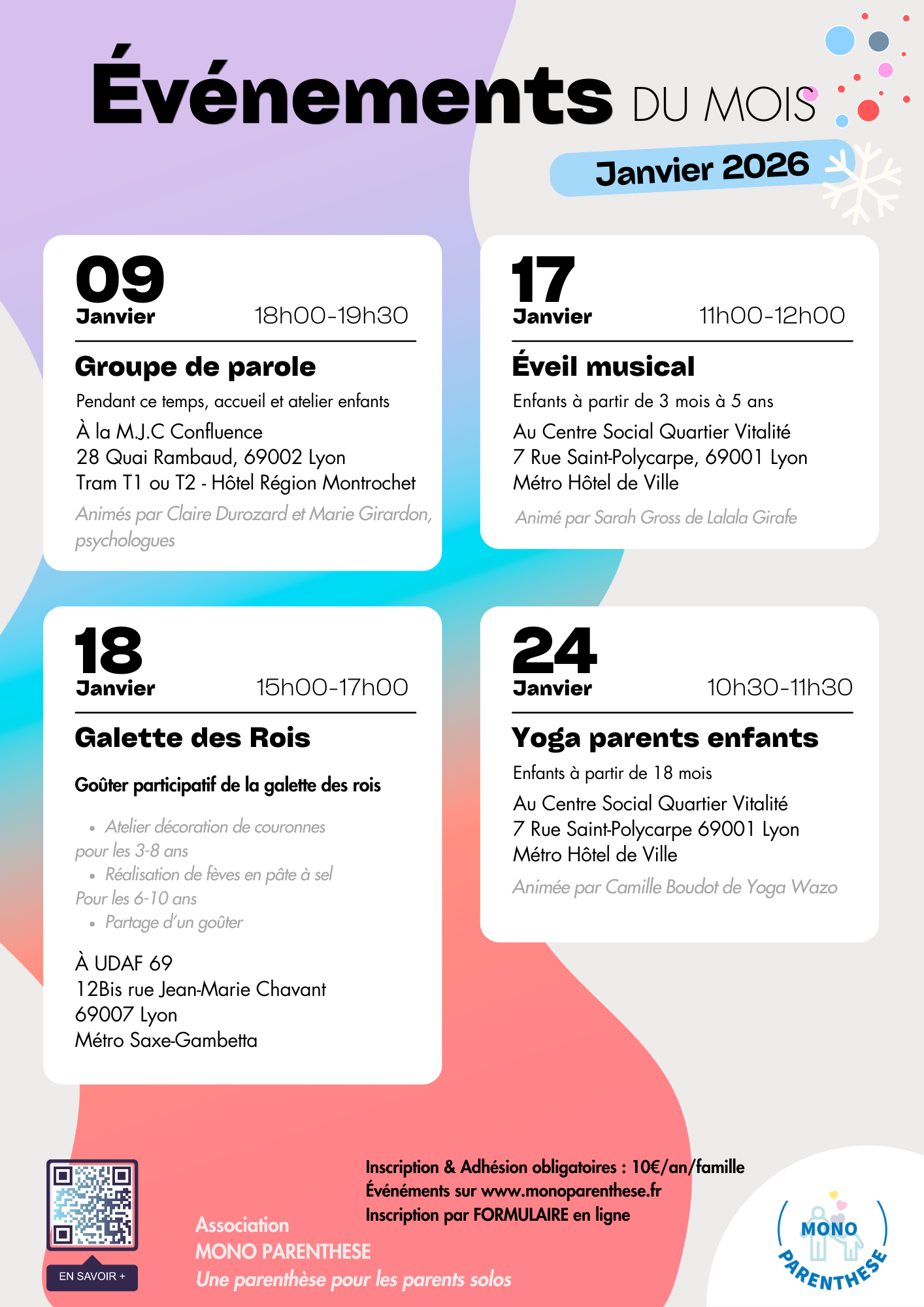 S’il s’agit de votre première participation, merci de nous contacter au préalable par email à monoparenthese@gmail.com