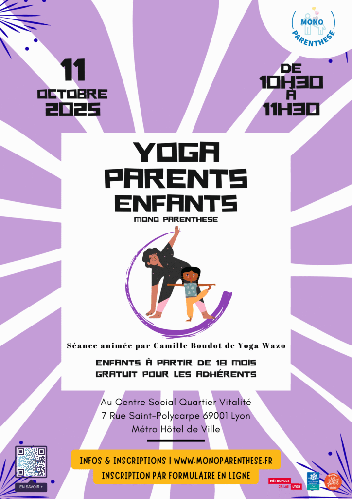 L’atelier Yoga parents enfants se déroule une fois par mois.
