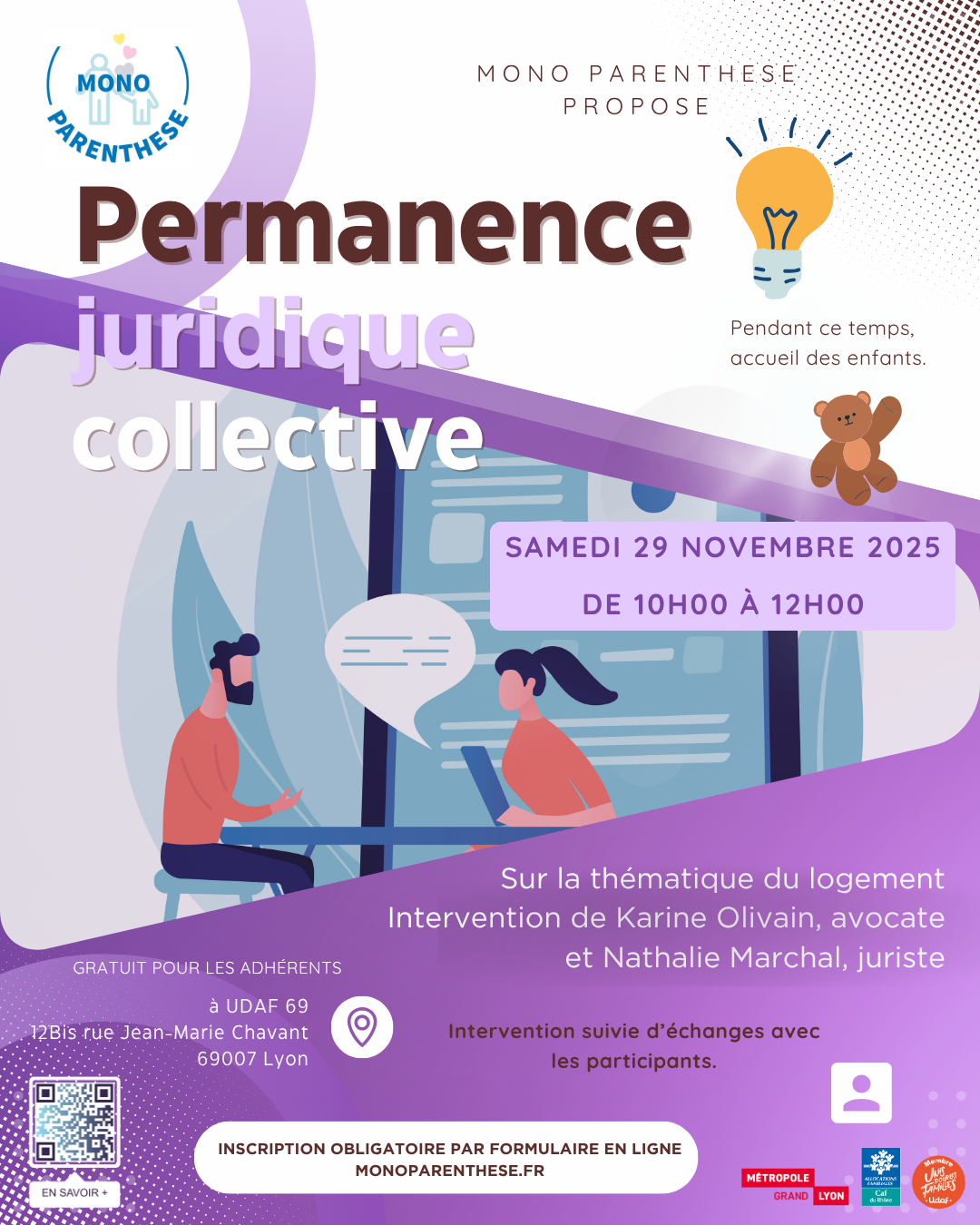 Karine Olivain, avocate au barreau de Lyon et Nathalie Marchal, juriste seront là pour vous présenter les aspects juridiques, les dispositifs existants concernant le logement et répondre à vos questions.