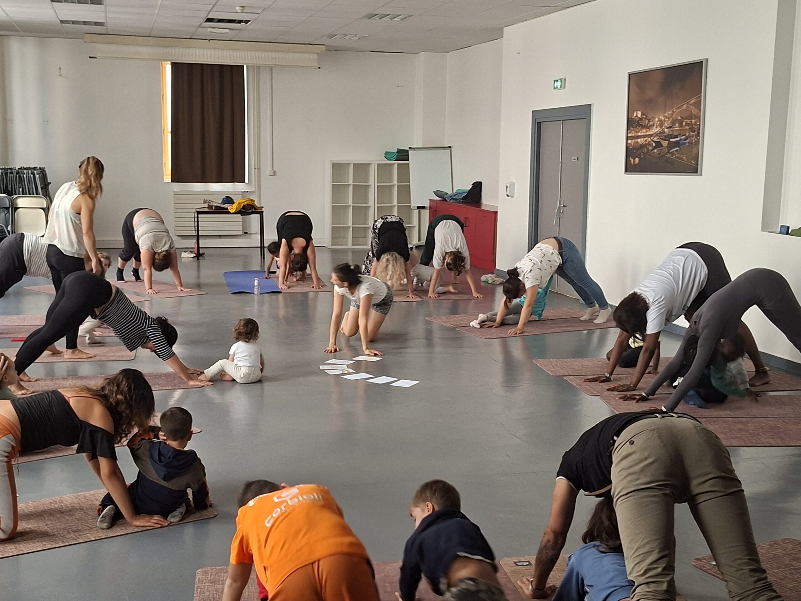 L’atelier Yoga parents enfants se déroule une fois par mois.